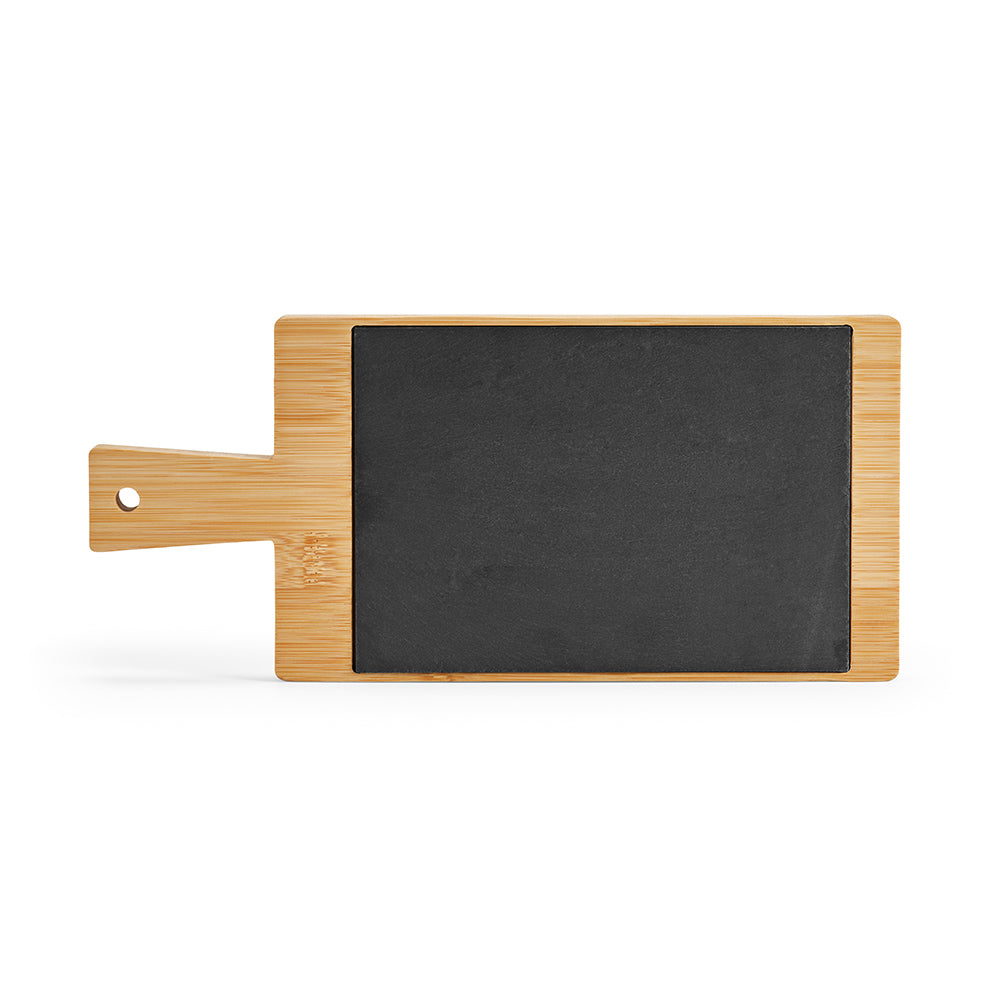 Reklamna daska za posluživanje od bambusa i škriljevca s ručkom i kredama za ukrašavanje. Neka ova daska bude Vaš suputnik, inspirirajući kulinarske avanture i stvarajući uspomene koje traju cijeli život. Pakirano u pojedinačnoj kraft kutiji.
