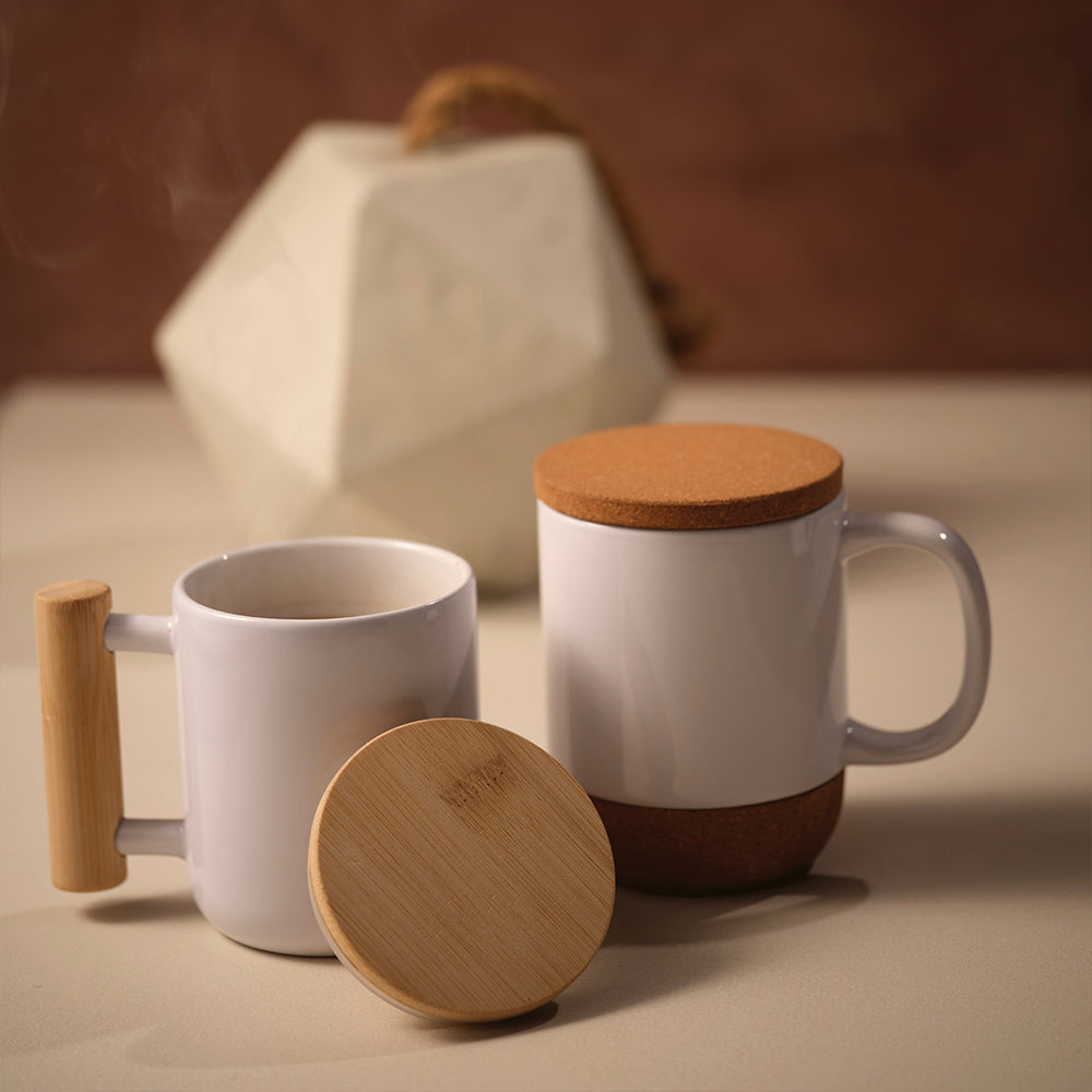 Keramička šalica s bambus poklopcem i ručkom – 380 ml